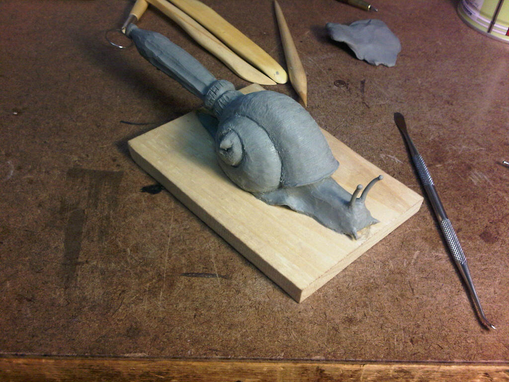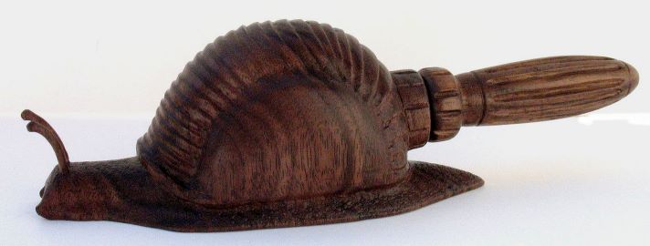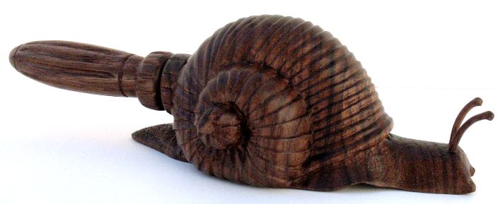 Jun 29A few posts back I posted pictures of an idea I had for a Snail Nutcracker that I sculpted in clay. I carved him out of Black Walnut and it came out great!